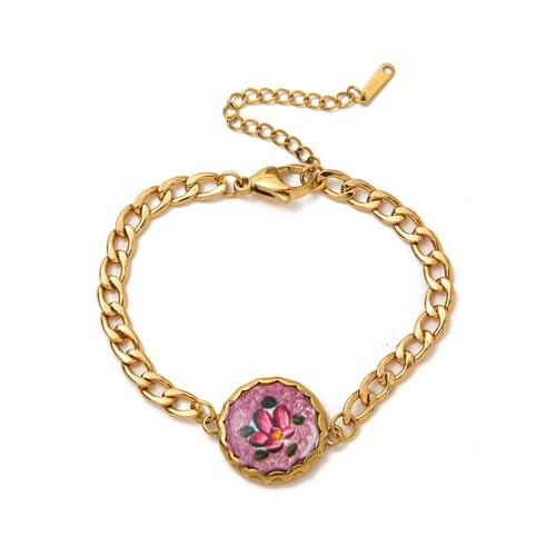 Crafted with meticulous attention to detail, each bracelet features a gold - toned chain that is both sturdy and stylish. The highlight is the pendant, adorned with vivid floral patterns inspired by classic French oil paintings. The colors are rich and the designs are intricately painted, giving each piece a unique, high - end look. Whether you're dressing up for a formal event or adding a touch of sophistication to your casual outfit, these bracelets are incredibly versatile.