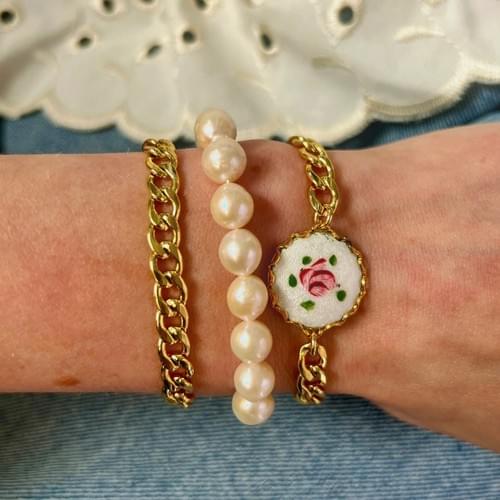 Unveil the charm of our wholesale French retro oil - painting style floral pendant bracelets, which have taken Instagram by storm. These bracelets are a true embodiment of timeless elegance and artistic flair.