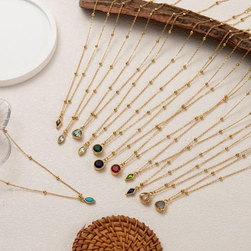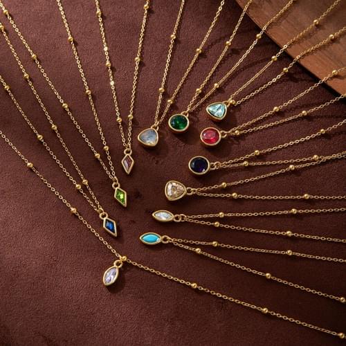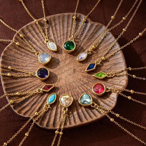 Elevate your jewelry wholesale business with our stunning 18K gold-plated stainless steel zodiac birthstone pendant necklaces. Each necklace features a delicate pendant adorned with a sparkling zircon, corresponding to a specific birth month's gemstone, carrying unique symbolic meanings of luck and protection. The stainless steel construction ensures durability, while the 18K gold plating adds a luxurious, long-lasting shine. The bead-detailed chain and versatile design make these necklaces perfect for any occasion, effortlessly complementing various outfits. Offer your customers these exquisite, meaningful pieces that blend elegance, quality, and personal significance — a surefire way to boost your sales!